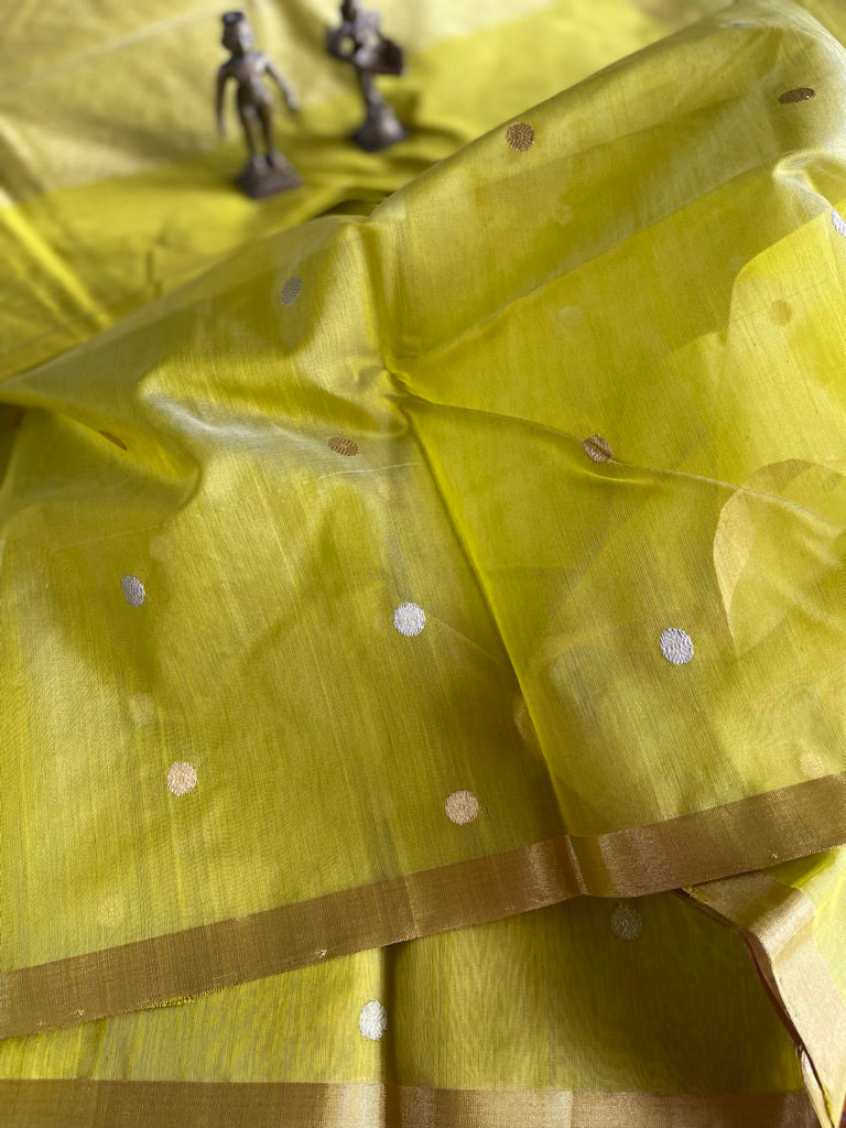 This collection showcases breezy and sheer Chanderi silks and Silk-Cotton handwoven sarees...