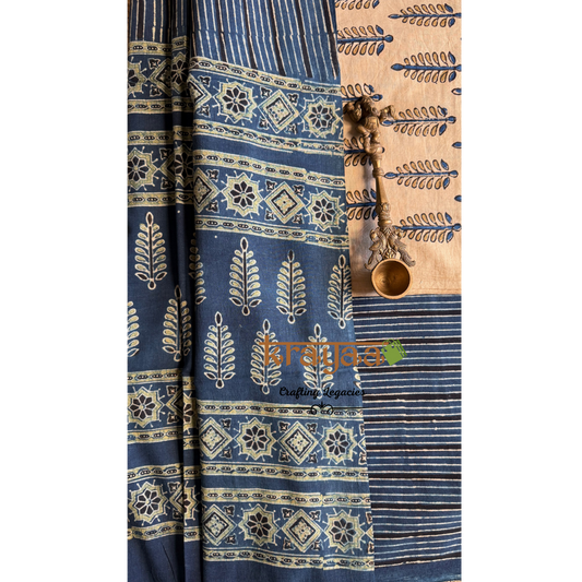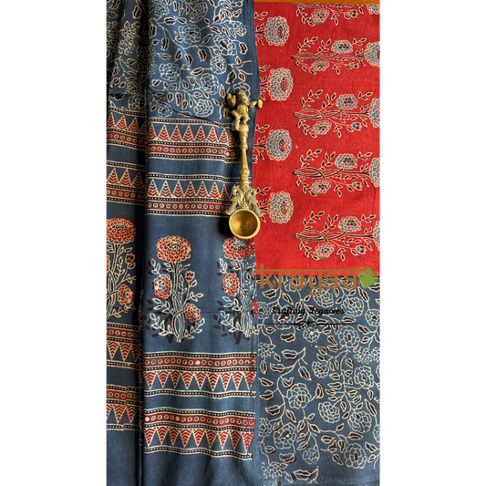 Blue Natural Dyed Ajrakh Handblock Print - Unstitched Suit Set With Dupatta