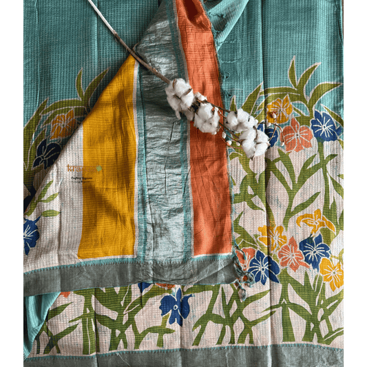 Seafoam Green Mangalagiri Silk Cotton Saree With Baatik
