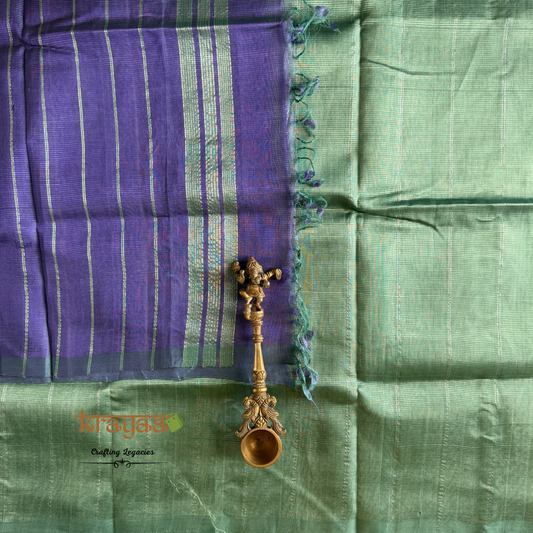 Green Colour With Purple - Mangalagiri Semi Silk Saree
