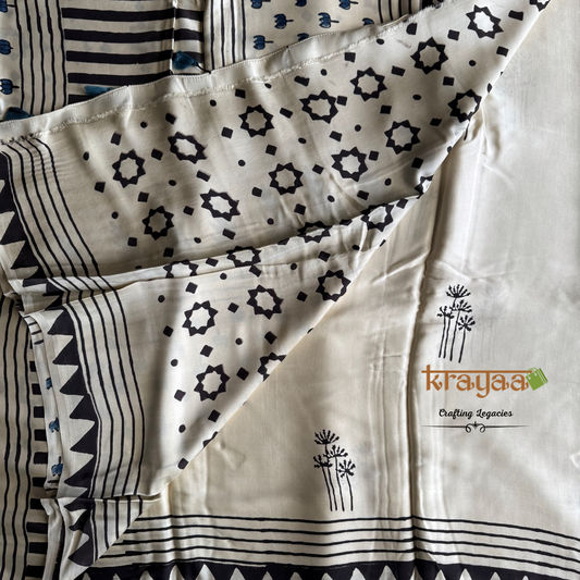 Offwhite Dandelion Prints Handcrafted - Modal Silk Saree With Ajrakh Handblock Prints.