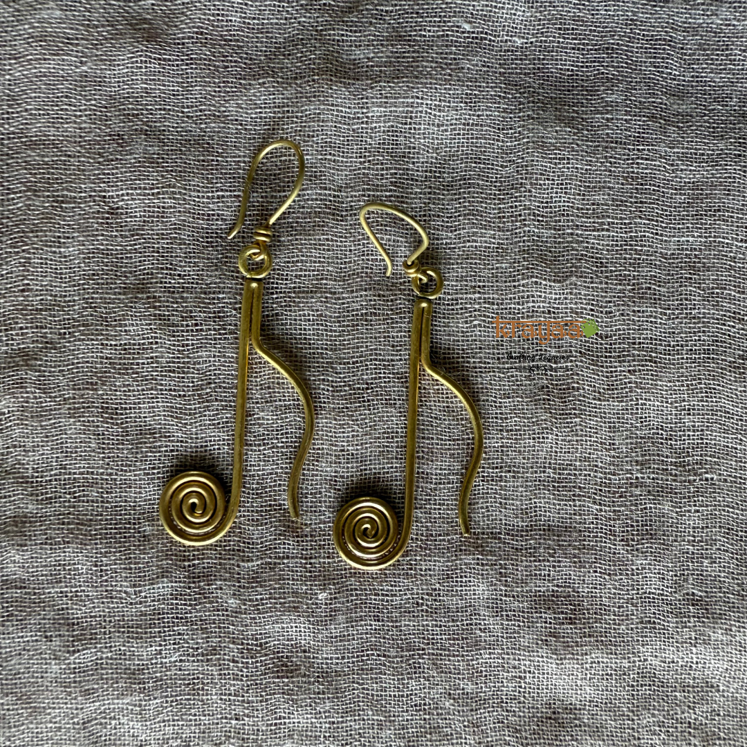 Brass beads long necklace in orange thread with earrings. Handcrafted Dhokra Jewellery from the land of Utkal.