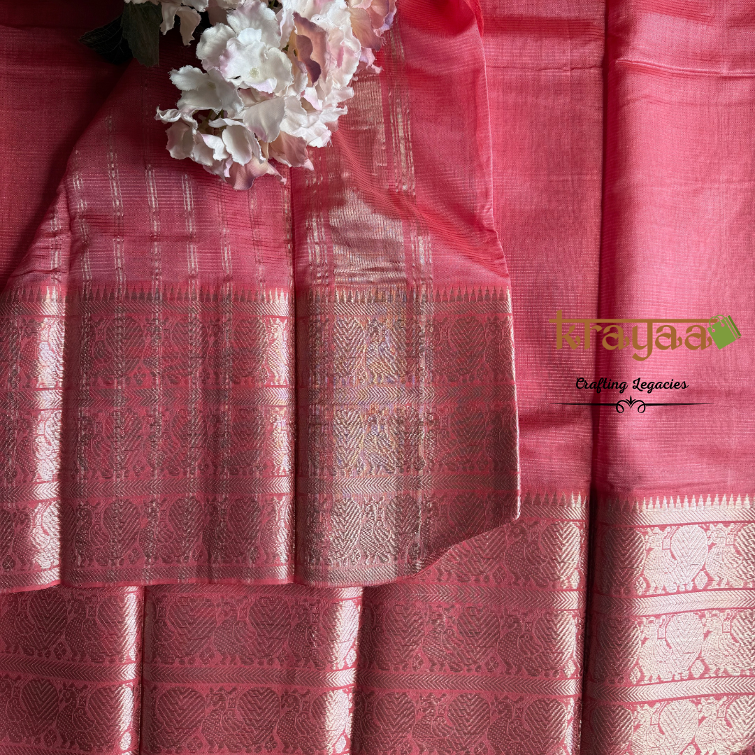 Kankambaram Pink Mangalagiri Silk Cotton Saree With Kanchi Border